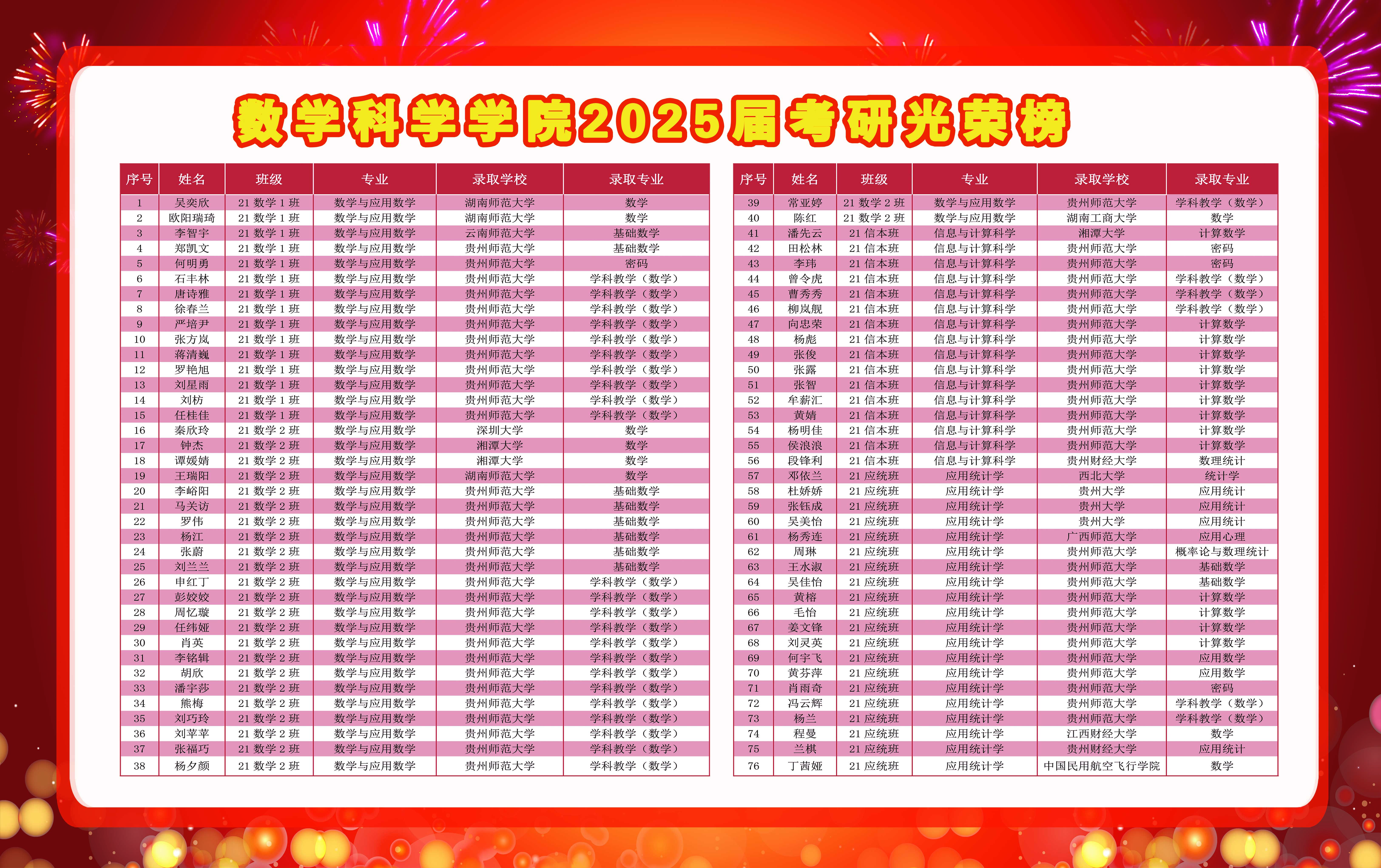 数学科学学院2025届考研光荣榜