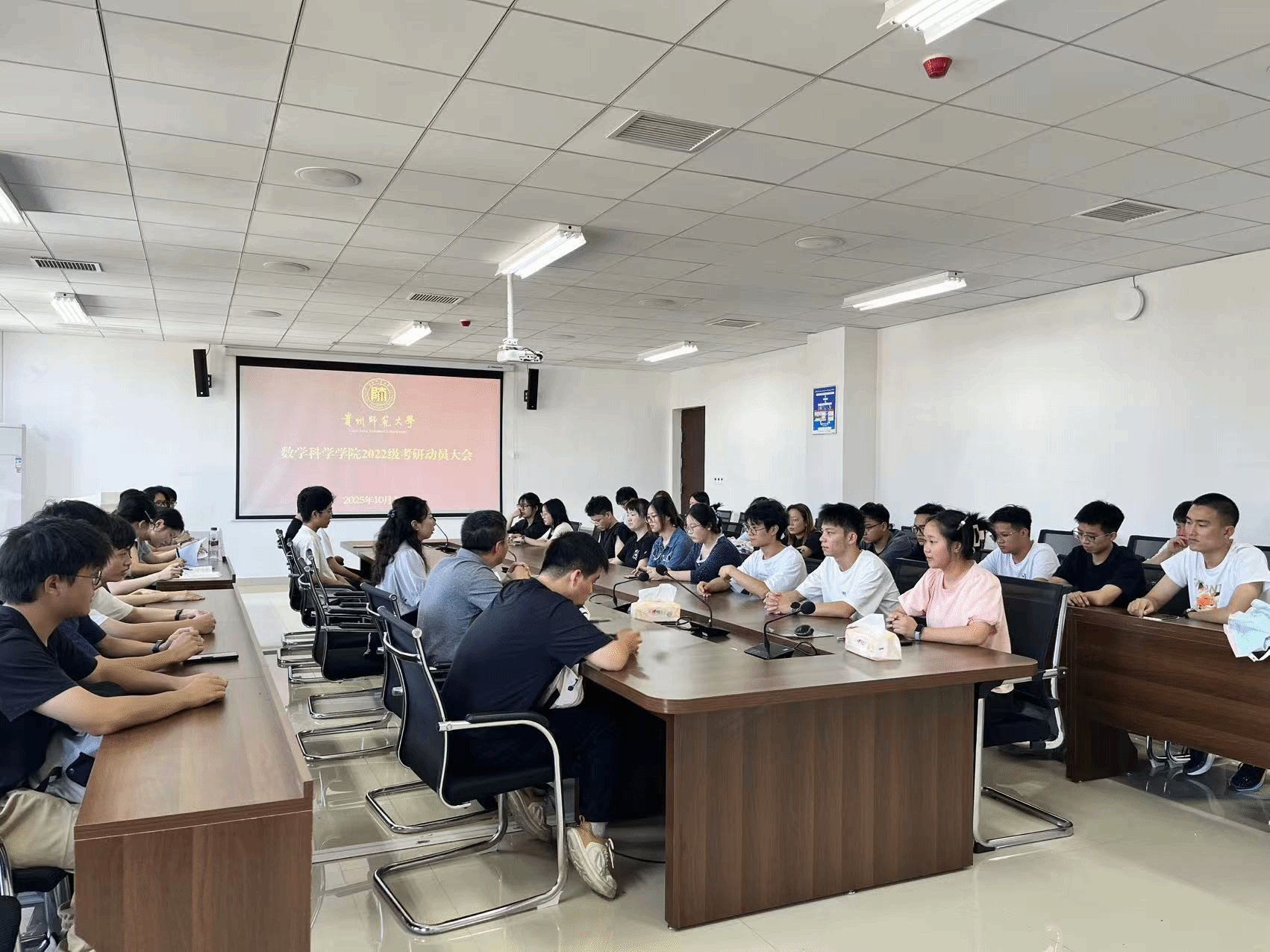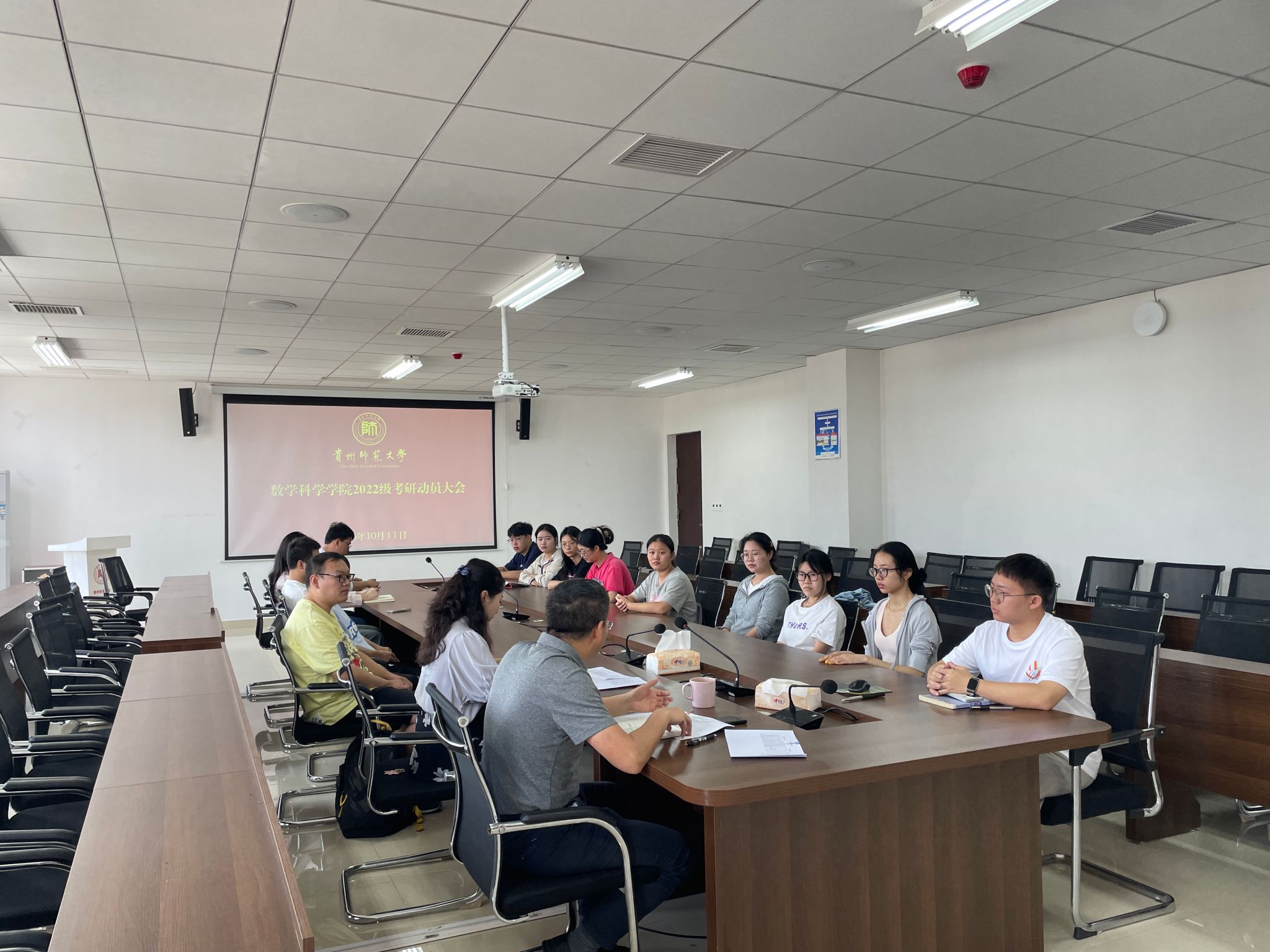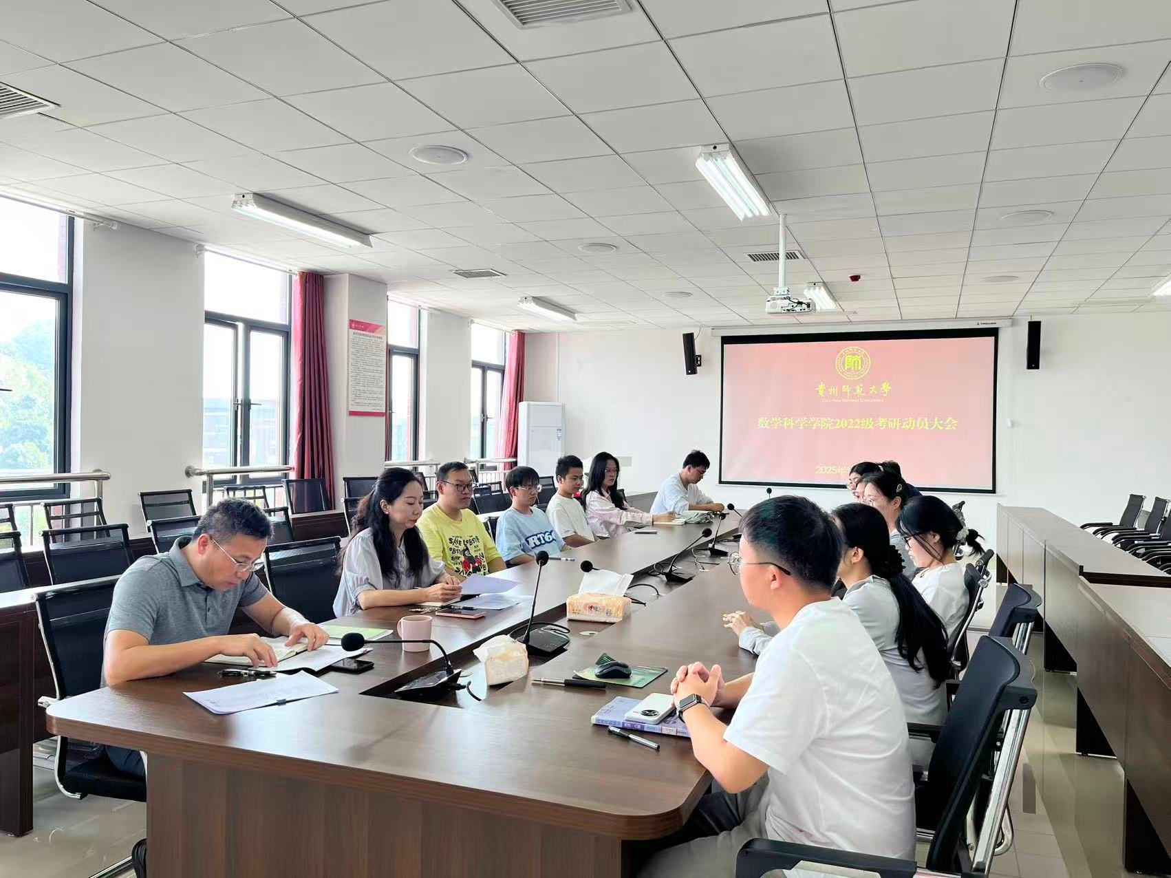 2025年10月11日,贵州师范大学数学科学学院在学院“教职工之家”成功举办2022级考研动员大会。本次大会旨在为备战考研的同学们明确方向、增强信心,营造积极向上的备考氛围。学院党委副书记江剑虹、副院长龙见仁受学院党委书记孙谦、院长吴云顺的委托到场与同学们亲切座谈交流。2022级有志于考研的同学们积极参与,现场气氛热烈,秩序井然。会议由龙见仁副院长主持。