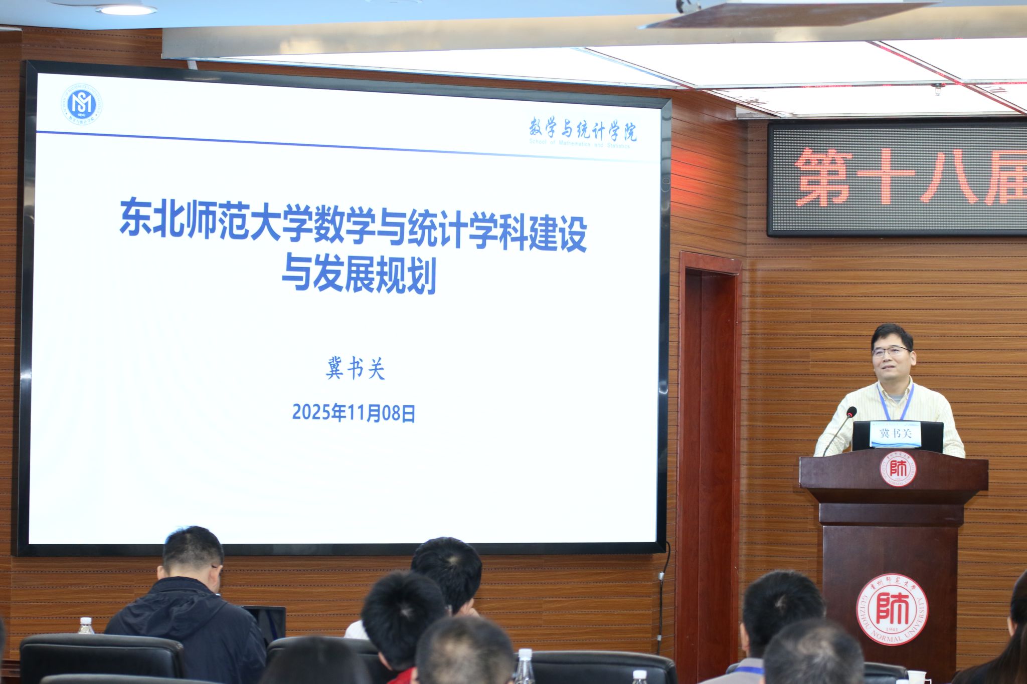 东北师范大学数学与统计学院院长冀书关分享了“东北师范大学数学与统计学学科建设与发展规划”,阐述通过学科交叉融合与资源整合提升学院核心竞争力的路径。