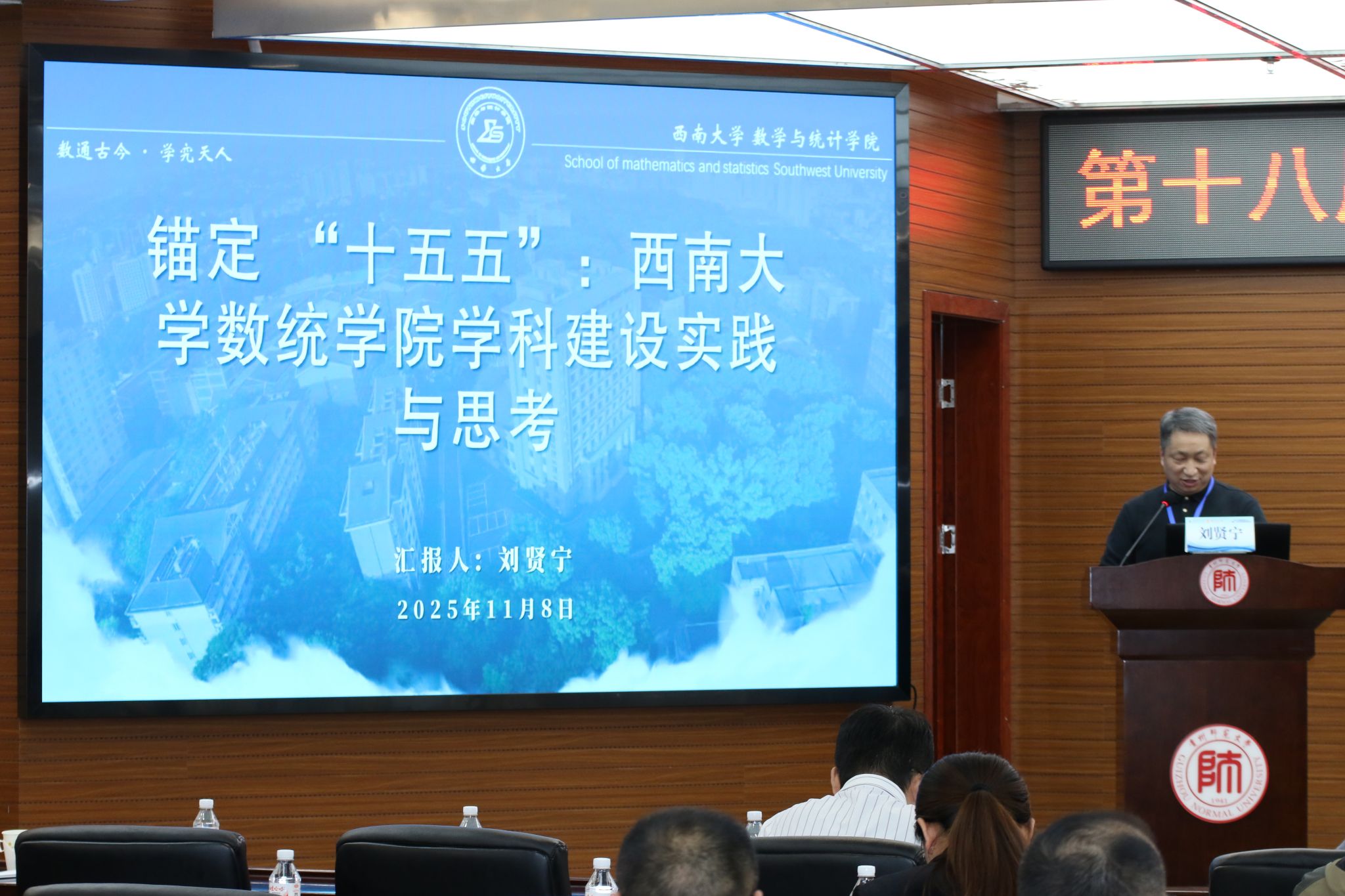 西南大学数学与统计学院院长刘贤宁分享“锚定‘十五五’:西南大学数统学院学科建设实践与思考”,通过推进学科开放融合,重点实施高水平人才引进、科研团队重构与交叉学科建设,构建三级梯队人才体系,全面提升基础数学研究与交叉应用创新能力。