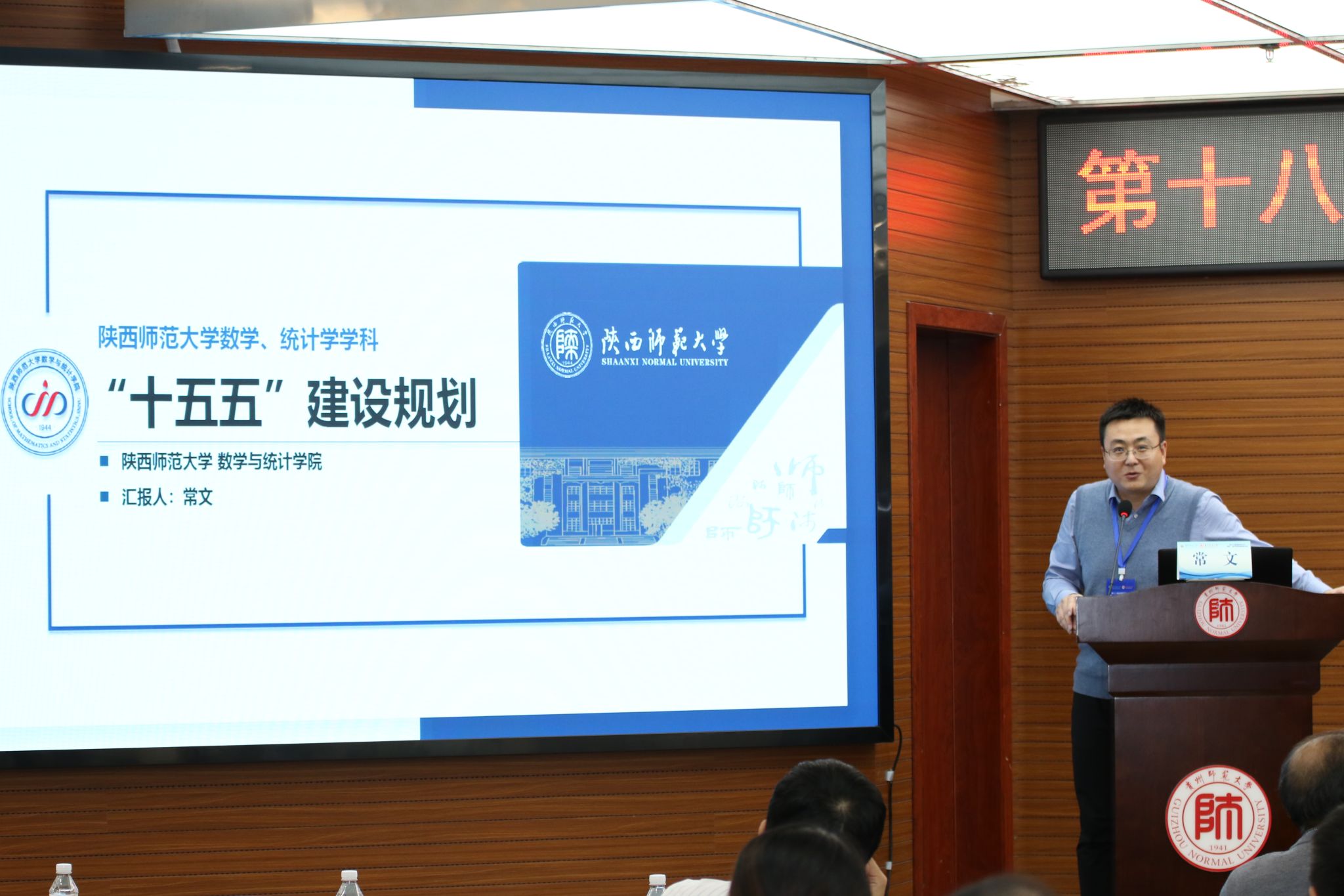 陕西师范大学数学与统计学院副院长常文介绍“陕西师范大学数学与统计学院‘十五五’建设规划”,规划聚焦于对内优化学术团队、拓展医学数学等交叉学科方向,对外则着力加强国际交流,务实推进中英合作办学,以双向发力驱动学科内涵式发展。