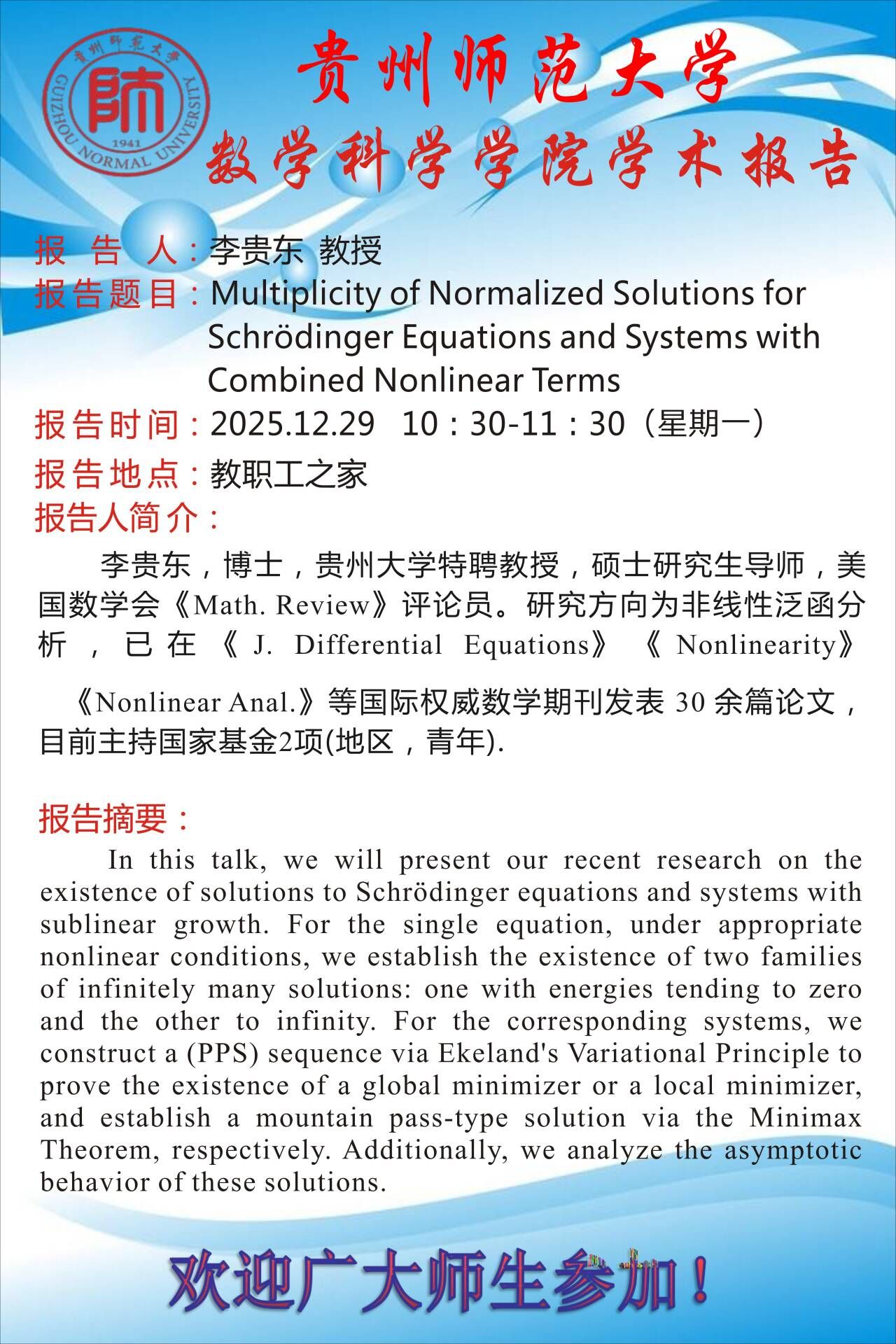 贵州大学李贵东教授受邀为我院师生做学术报告