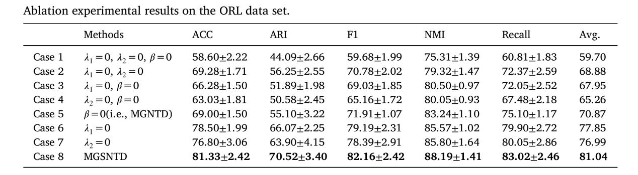 MGNTD与MGSNTD在ORL数据集上的消融实验结果