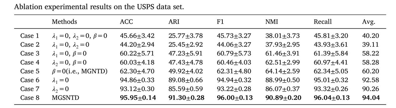 MGNTD与MGSNTD在USPS数据集上的消融实验结果