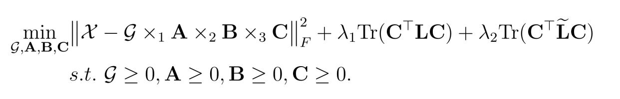 非负Tucker分解(NTD)是一种提取张量数据低维表示的常用技术,但其本质是无监督的。图作为呈现数据空间几何信息的重要方式,已被广泛使用。许多基于图的NTD方法已被提出。然而,这些方法在利用图时依赖于数据空间的单一表示,而忽略了数据空间的其他有意义的表示形式中的图。为了解决这一局限性,我们构造一个多图正则化并引入到 NTD中,提出一种多图正则化NTD(MGNTD)方法。该方法能提取一个有效的保留了原始数据空间中的多种图结构的低维表示。此外,我们融入少量标签信息到该方法中,将它扩展为一种半监督方法—多图正则化半监督NTD(MGSNTD)。该方法能通过传播标签信息并保留数据空间中的多图结构,提取到一个更好的低维表示。针对这两种方法,文中给出了有效的求解算法,并分析了相应的收敛性。在真实数据集上的大量实验结果表明这两种方法的有效性。