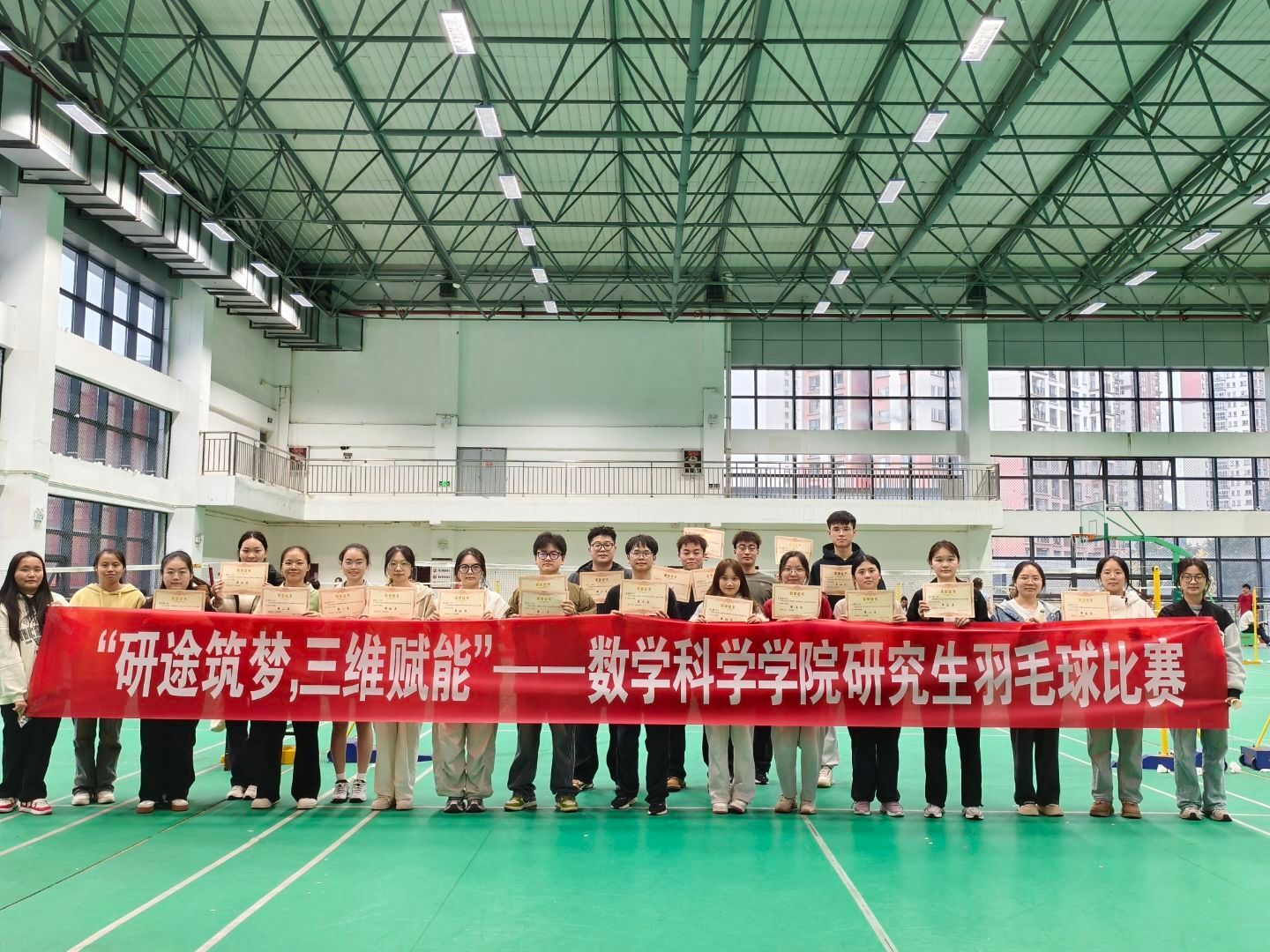 为丰富校园体育文化生活,增强学生体质,激发研究生群体参与体育运动的热情,2025年10月26日,数学科学学院在学校体育馆羽毛球场(风雨球场)成功举办了2025年度研究生羽毛球赛。本次活动由学院研究生会策划组织,吸引了近60名研究生参赛。