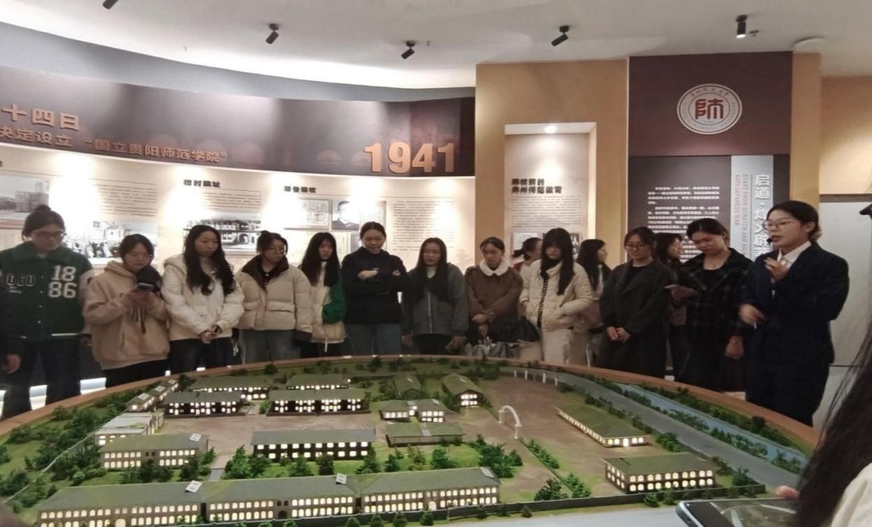 参观过程中,同学们认真聆听讲解,与讲解员积极互动。“在这里,历史不再是书本上抽象的数字与事件,而是由无数个‘他’和‘她’用青春与热忱编织而成的锦缎。”2025级学科教学(数学)班李铭辑在参观完后分享道。2025级计算数学的毛怡也表示:“我们这一代师大学子的使命,就是接过历史的接力棒,将这份厚重的精神财富内化于心、外化于行,用我们的青春和智慧,为贵州师范大学的未来续写新的辉煌篇章。”
