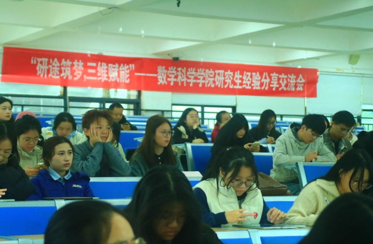 为帮助2025级研究生新生尽快适应新阶段的学习与生活,科学规划个人发展路径,充分发挥朋辈引领的积极作用,10月24日上午,数学科学学院在公教GJ6301教室成功举办“研途筑梦,三维赋能”研究生经验分享交流会。活动由学院研究生会谢安梅同学主持,特邀2025年研究生国家奖学金获得者焦亭瑾、安丽园、杨茜靖、包玉兰、杨丽五位同学作为分享嘉宾,为全体新生带来内容丰富、贴近实际的经验分享。